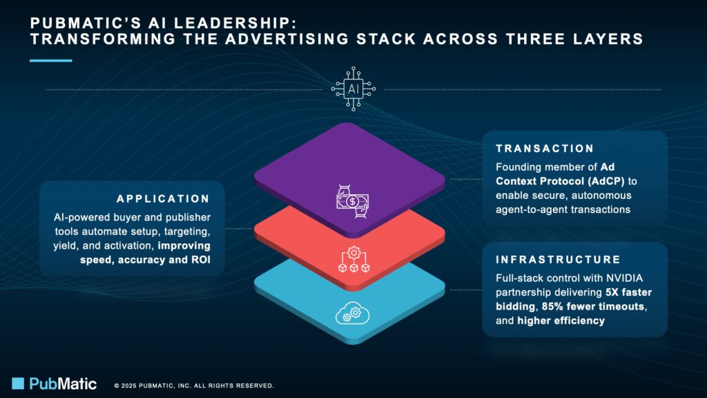 ·           Transaktionsebene: Hier wird die agentenbasierte Intelligenz in die Praxis umgesetzt. Eine interoperable Ausführungsumgebung verbindet die agentenbasierte Entscheidungsfindung direkt mit der Einkaufsplattform Activate von PubMatic und führt Premium-Inventar, Live-Kampagnensignale und Bidding-Infrastruktur zusammen, um Transaktionen in Echtzeit über Programmatic Guaranteed- und Private Marketplace-Transaktionen abzuwickeln. Diese Ebene stellt sicher, dass agentenorientierte Workflows mit bestehenden Kaufmodellen kompatibel bleiben und zugleich intelligenter sowie adaptiver werden.